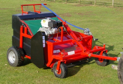 The regular removal of droppings promotes healthy grass and helps reduce droppings related diseases. Four rows of height adjustable brushes rotate at variable speeds to flick the droppings into the rot proof rear collecting box. The brushes are driven by a 5.5Hp Honda engine equipped with a speed reduction gear box which incorporates a centrifugal clutch, this means when the engine speed is reduced the brushes stop revolving, a necessary feature when moving from heap to heap.